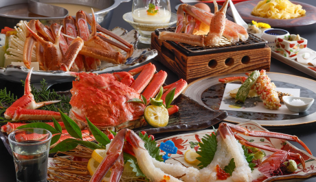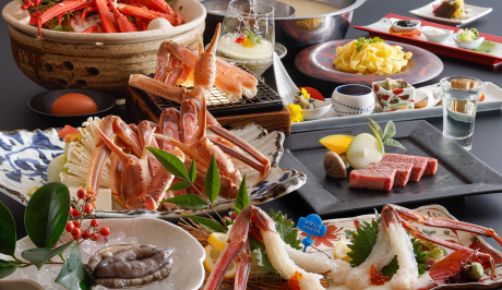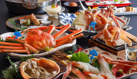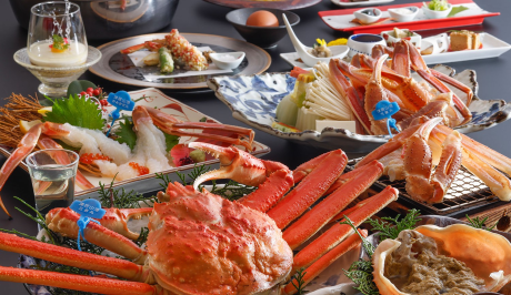 日本海屈指の漁港である津居山港・柴山港から早朝に水揚げされた松葉蟹を、毎朝市場から活きたまま仕入れ、新鮮な蟹を毎日お客様にお届け致します。カニ専門仲卸店「朝市広場」を営む当館だからこそできるおもてなし。