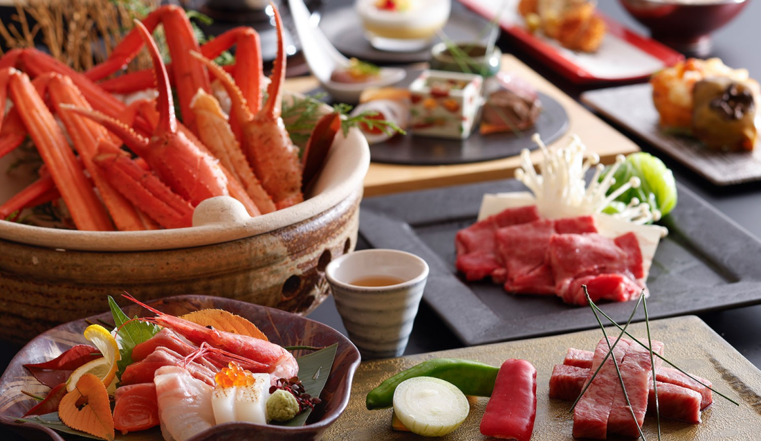 近海で水揚げされた新鮮な魚介類や、但馬牛ステーキなど山海の美味食材をバランス良くお召し上がり頂けます。